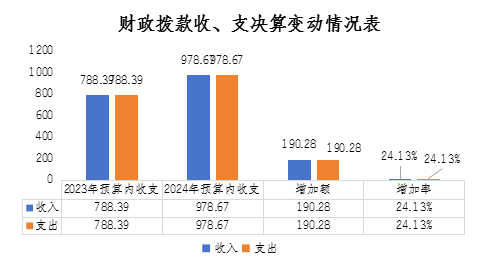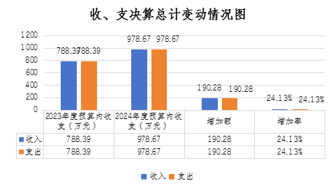 2024年度收、支總計均為978.67萬元。與2023年度相比,2024年度預(yù)算收入978.67萬元,比上年預(yù)算收入788.39萬元增加190.28萬元,增加24.13%,收入增加的主要原因是:財政追加“巴適購”電商平臺建設(shè)補助、革命老區(qū)重點城市對口合作(金華-巴中)等企業(yè)發(fā)展資金項目;增人增資及社會保障繳費預(yù)算收入總數(shù)增加等。