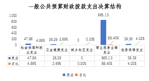 2024年一般公共預(yù)算財政撥款支出978.67萬元,主要用于以下方面:社會保障和就業(yè)支出47.86萬元,占總支出的4.89%;衛(wèi)生健康支出26.29萬元,占總支出的2.69%;商業(yè)服務(wù)業(yè)等支出865.13萬元,占總支出的88.40%;住房保障支出39.39萬元,占總支出的4.02%。