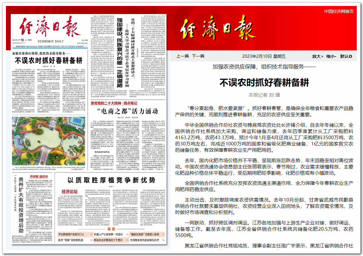 全國(guó)供銷合作社系統(tǒng)充分發(fā)揮農(nóng)資流通主渠道作用,全力保障今年春耕農(nóng)業(yè)生產(chǎn)用肥用藥穩(wěn)定供應(yīng)。