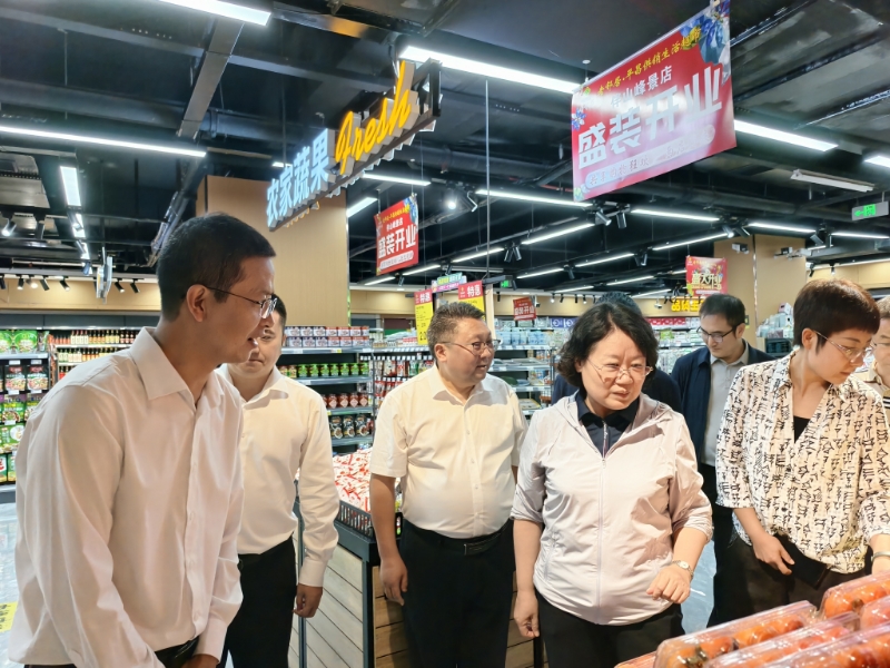 調研組一行在老鄰居·平昌供銷生活超市調研農產(chǎn)品流通體系建設情況