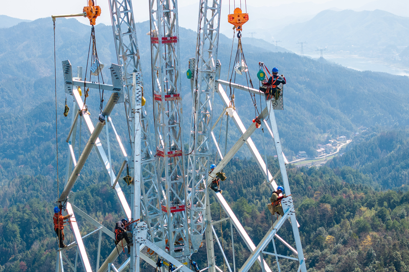 當(dāng)日,在湖南省益陽市安化縣冷市鎮(zhèn),湖南省送變電工程有限公司電力工人抓緊推進(jìn)“寧電入湘”工程組塔工作,力爭項(xiàng)目早日建成運(yùn)營。